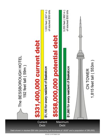 The current City of Saskatoon debt is a number that most residents cannot really comprehend. The number is so large that no person has a real sense of what this might actually look like.
